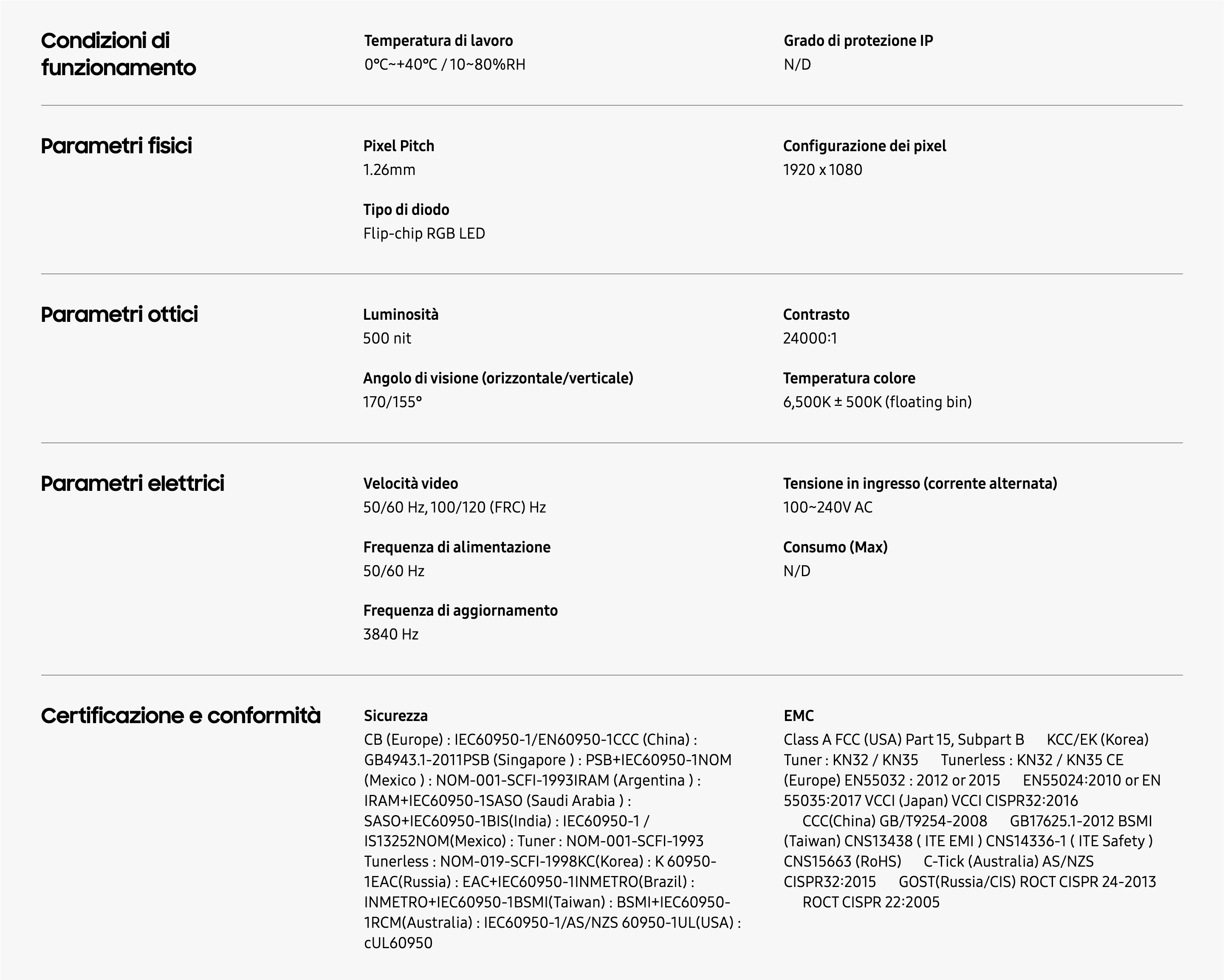 *Dato basato su test condotti internamente da Samsung rispetto ai display LED Signage tradizionali.